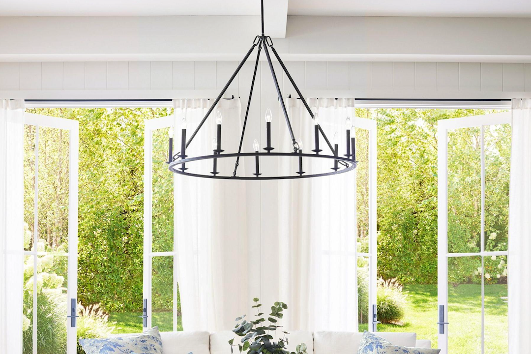 The choice of finish—whether matte black, antique brass, or polished nickel—further enhances its versatility, allowing it to complement various interior styles from industrial to farmhouse chic. In addition to its structural integrity, the chandelier features carefully designed arms that extend outward from the central hub, each holding a light source. This radial arrangement not only maximizes illumination but also creates an intricate visual pattern when viewed from below.